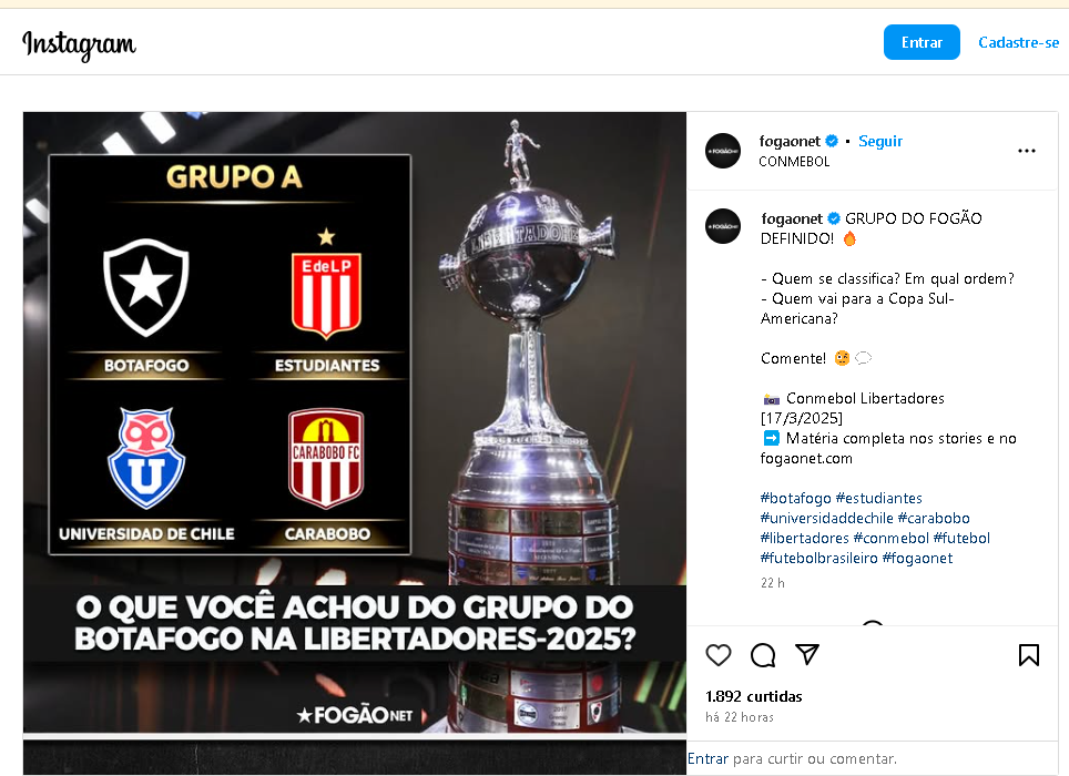 – O Botafogo tem uma equipe de scouting de 19 pessoas. A gente está monitorando o mercado 24 horas por dia todos os dias. Então sempre a gente busca oportunidades independentemente da competição que a gente joga. Claro que o Mundial é o menina dos olhos, a gente quer fazer bonito lá nos Estados Unidos. E o nosso time de scouting tem trabalhado muito para poder chegar nesse Mundial com o elenco o mais forte possível. Investimento não vai faltar, a gente já provou isso. É fazer investimento correto. Tem jogadores que são custos e jogadores que são investimentos. A gente sempre busca os jogadores que são investimentos, ou seja, aqueles que dão retorno no longo prazo, não só esportivamente, mas também financeiramente. Então é a nossa política, eu acho que a gente vai continuar fazendo isso, independentemente da competição que a gente estiver jogando – garantiu Thairo Arruda, em vídeo divulgado pelo site “GE”.