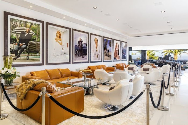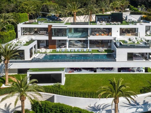 A mansão está localizada em Los Angeles e possui 12 suítes, 21 banheiros, 3 cozinhas e 5 bares