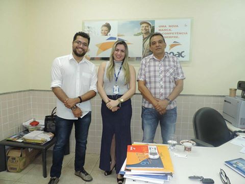 Esquerda para direita: Expedito Júnior, ao centro Diretora do SENAC Rosilene Bonfim e a direita,  Secretário de Indústria e Comércio  José Antonio Queiroz