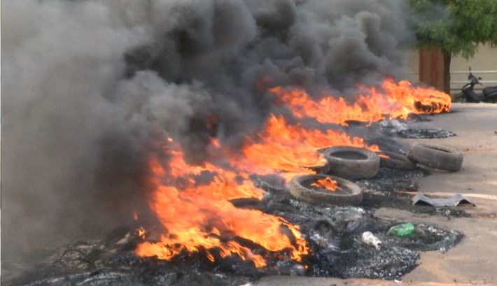 Os manifestantes atearam fogo em pneus e interditaram a entrada da cidade.